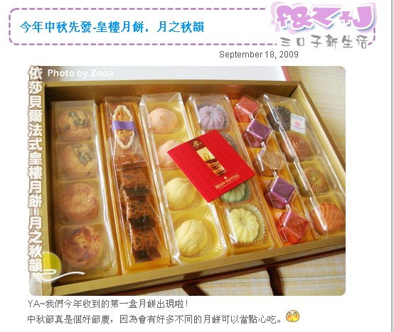 以下內容引用至*About Zooa* - 今年中秋先發-皇樓月餅,月之秋韻