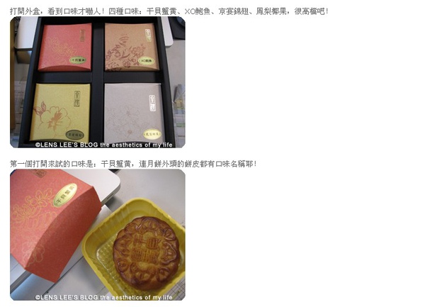 以下內容引用至the aesthetics of my life【Lens的生活美學】 - 【趣工作分享】愛德華試吃超高檔「皇樓月餅」報告
