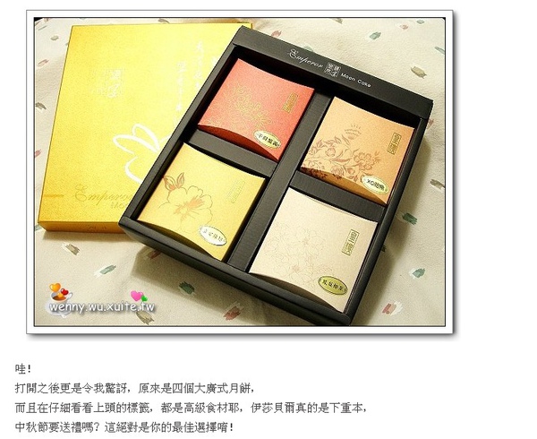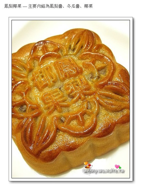以下內容引用至皇樓月餅,中秋前夕月餅試吃第一彈 @ Wenny's 溫馨小築