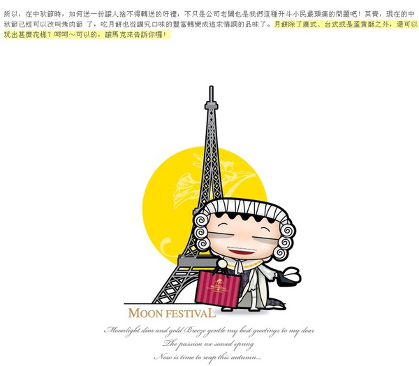 以下內容引用至我是馬克 i'm mark - 中秋節 也可以很法國!!