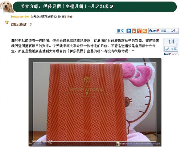 以下內容引用至L K K 的心聲: 美食介紹:伊莎貝爾「皇樓月餅」--月之幻采